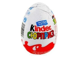 Киндер Сюрприз (2 шт),  Киндер Макси 21 г. (3 шт),  Киндер Кантри (со злаками) (2 шт),  Киндер Джой (1 шт),  Киндер Шоколад 8 плиток 100г. (1 шт),  Киндер Бонс (1 шт),  Киндер Буэно (1 шт),  Киндер Делис (1 шт)